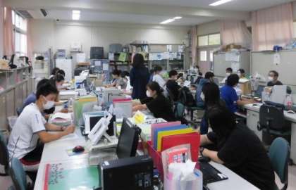 1学期の各学級での児童の給食時間の様子を振り返って、給食指導(給食の準備や着替え・給食の配膳の仕方と児童への指導・黙食の指導・食べ終った児童への指導など)15項目について考えました。低学年・中学年・高学年と発達段階において児童の様子は違いますが、学校として共通した給食指導について再確認することができました。2学期からの給食指導に生かしていきます。今回の交流会で検討した内容について、給食委員会の取組を通して、子どもたちと共に給食指導について考えていきます。