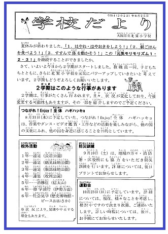学校だよりにありましたように、「元気モリモリズム1・2・3」(1.はやね、はやおきをしよう! 2.朝ごはんをたべよう! 3.すすんで体を動かそう!)を2学期も続けましょう。