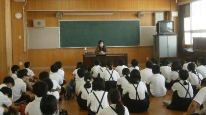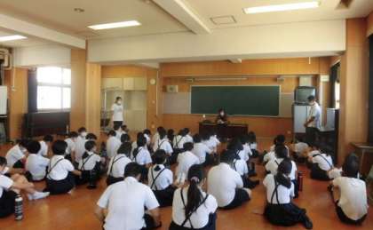 講師の先生から人権講話を聞きました。感想等プリントを作成後は、民族衣装カードをつくりました。