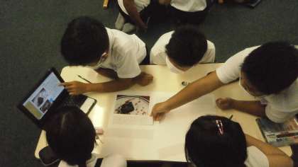 世界の国々の食文化について学習し、グループに分かれて、新聞づくり等でまとめました。