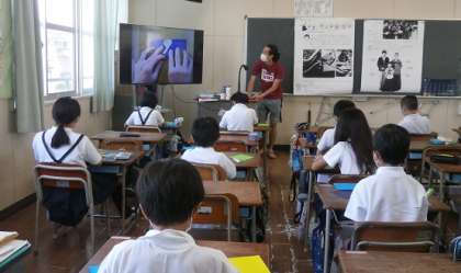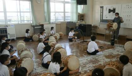 韓国・朝鮮の楽器(チャンゴ・プク・ケンガリ・チン)の演奏を体験しました。折り紙チョゴリもつくりました。