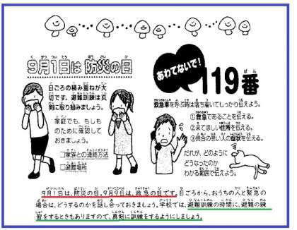 児童朝会でも話しましたように、今日は「防災の日」です。