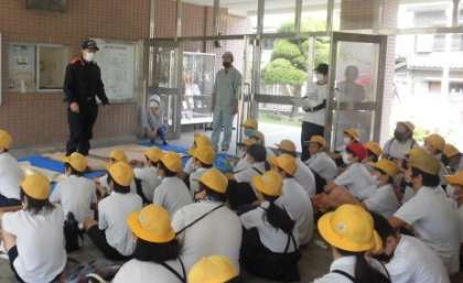地域の方と消防署の方による「担架救助訓練」がありました。