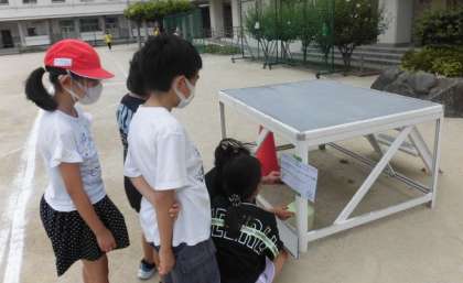謎解きの問題が、運動場に10か所あります。難しい問題もあります。近くにいる大人の人にヒントを聞いてもいいです。早くできると、水鉄砲を選ぶことができます。さぁ、スタート!