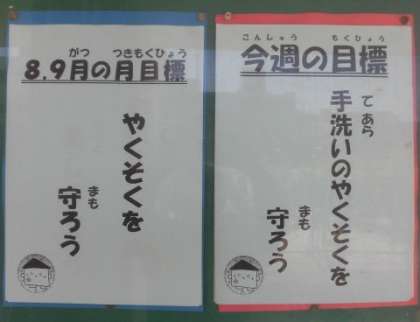 担当の先生から、今週の目標「手洗いのやくそくを守ろう」についての話がありました。今月は、「くらし魂」です。