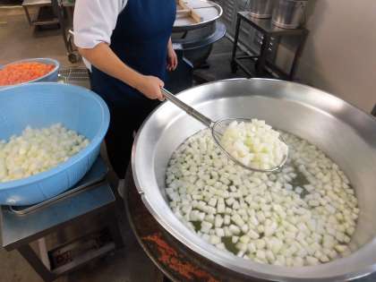 今日は、夏が旬のとうがんを使った煮ものです。とうがんは、今年度は今日が最後の登場です。