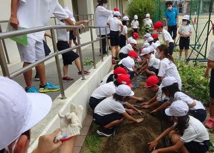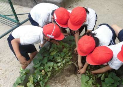 今日は、2年生の生活科で、芋ほりをしました。2年生が育てていたサツマイモが大きく育っていました。初めは、子どもたちはなかなか掘り出すことができませんでした。時間が経つにつれて、みんなで協力してサツマイモを収穫することができました。