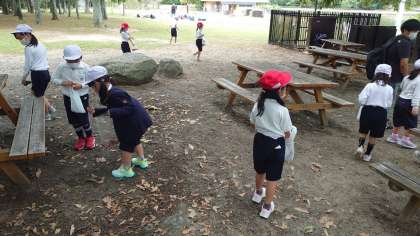 みんなは、持ってきた袋にいっぱいのドングリを拾いました。とてもうれしそうでした。