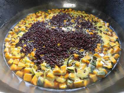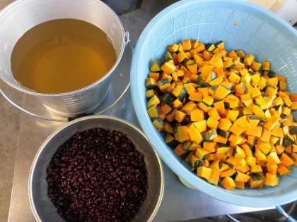 「かぼちゃのいとこ煮」には、あずきとかぼちゃを使っています。
