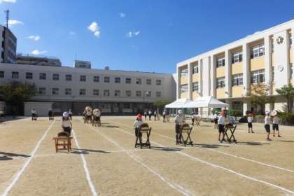 3年生は、「北巽ジャンボリー隊!出発進行!!」を練習しました。和太鼓(長洞・締め太鼓)や韓国の太鼓(チャンゴ・プク・ソゴ)を踊りや振り付けを入れて、笑顔いっぱいに演奏していました。