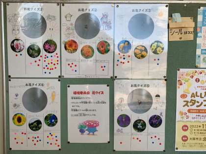 全校児童のみんなに花や野菜に興味をもってもらえるように、環境委員会の児童がお花クイズをつくりました。