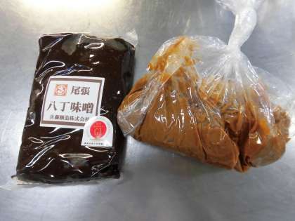 今日は、「みそカツ」のたれに、八丁みそと赤みそを使っています。