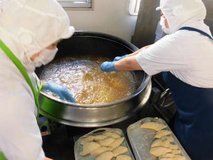 衣がとてもはがれやすいので、一つ一つ油に入れて、慎重に慎重に揚げてくださいました。