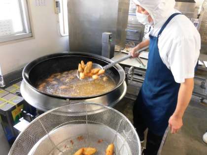 今日は、「まぐろのオーロラ煮」の予定でしたが、まぐろが使えなくなったため、「たらフライ」に変更になりました。