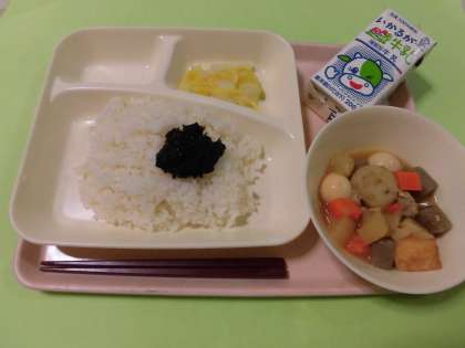 ・ごはん ・牛乳 ・関東煮 ・はくさいの甘酢あえ ・のりのつくだ煮 です。