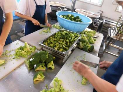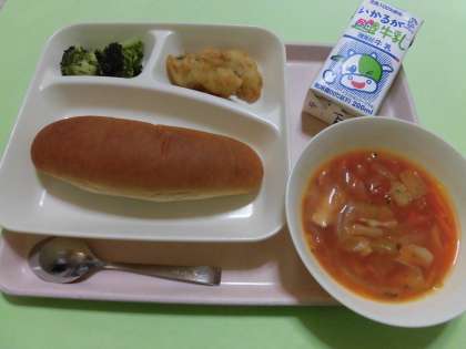 ・黒糖パン ・牛乳 ・白身魚フリッター ・ミネストローネ ・ブロッコリーのサラダ  です。