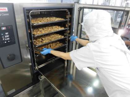 「鶏肉のおろしじょうゆかけ」は、焼き物機で焼いた鶏肉に、だいこんおろし、みりん、うすくちしょうゆ、ゆず果汁で作ったたれをかけています。