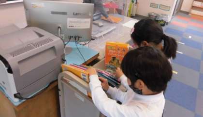 図書室に行って、はたらく車や鉄道、船等の本を探しました。本をよく読んで、のりものについて調べたことをワークシートにまとめました。
