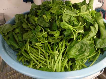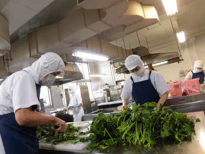 冬が旬のだいこんやほうれんそうを使っています。野菜を蒸して味付けしたナムルと、炒めた肉をごはんにのせて食べます。