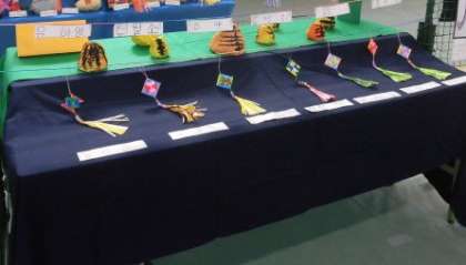 民族学級3年生「はりこのホランイ」、4年生「折り紙ノリゲ」の作品です。