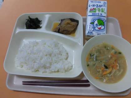・ごはん ・牛乳 ・なまりぶしのしょうが煮 ・じゃがいものみそ汁 ・ほうれんそうのおひたし です。