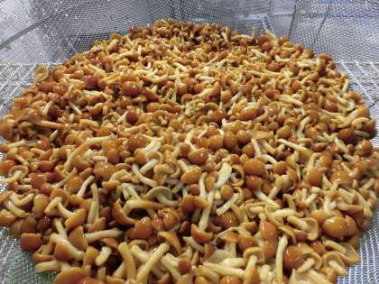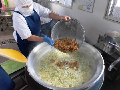 なめこの他全部で5種類のきのこを、給食室の前で育てています。給食委員会のみんなが育ててくれています。大きく育つのがとても楽しみですね。