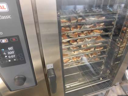 あかうおは、焼き物機で焼いて、料理酒、みりん、うすくちしょうゆで作ったたれをかけています。