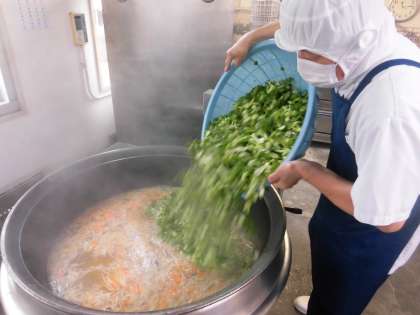 オイスターで味付けした豚肉と、中華みそスープと合わせ、さっぱりとしたりんごがとてもうれしいですね。