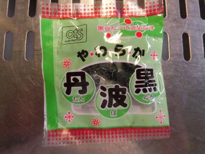 給食では、献立にいろいろな豆が登場します。今日は、大豆の仲間の黒豆(黒大豆)です。小袋のものでは、ポリポリとした食感の「いり黒豆」と、柔らかい「ソフト黒豆」の2種類があります。