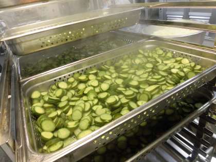 「きゅうりのしょうがづけ」は、焼き物機で蒸したきゅうりを、しょうがの香りがよくきいたたれにつけています。