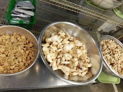 きのこはしめじ、エリンギ、マッシュルームの3種類を使っています。