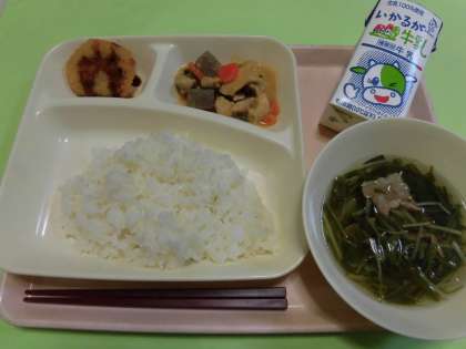 ・鶏肉の土手焼き風 ・はりはり汁 ・れんこんのフライ大阪ソース味 ・ごはん ・牛乳 です。