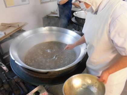 「はりはり汁」は、牛肉からたくさんあくが出るので、とてもていねいにとってくださいました。