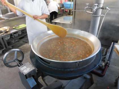 今日は、「ビーフシチュー」です。ビーフシチューに使うルウは、小麦粉と綿実油をいためて作っています。
