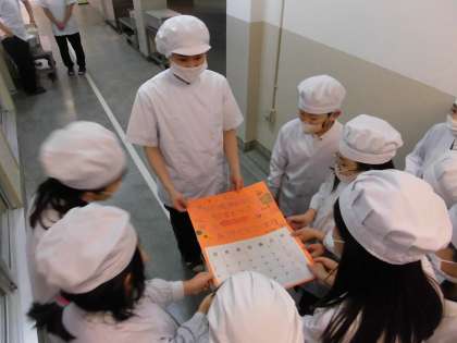 今週は、学校給食週間です。給食を取りに行くときに、各クラスから、調理員さんへカレンダーのプレゼントをしました。