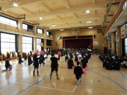 4年生は、「彩」という曲を、振り付けしながら合唱しました。