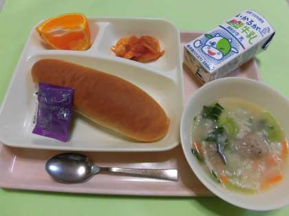 ・えびのチリソースいため ・中華がゆ ・デコポン ・ブルーベリージャム ・コッペパン ・牛乳