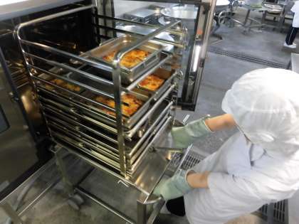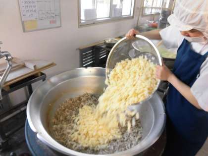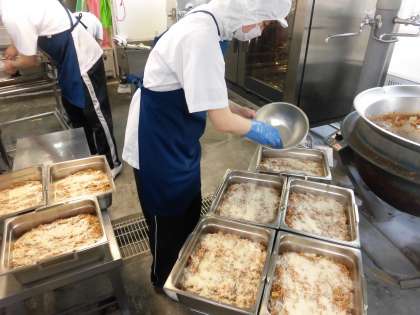1日目は、「じゃがいものミートグラタン」です。じゃがいもにケチャップ味のミートソースを合わせています。表面にはパン粉をふって、焦げ目をつけています。乳製品を使っていないので、乳アレルギーのある人も食べることができます。