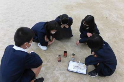 6年生は、理科の授業で、ものが燃えるしくみについての実験をしました。空き缶と割りばしを使って、新しい空気が吸い込まれてものが燃えることを確かめました。