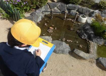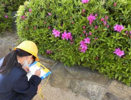 3年生は、理科の授業で、校庭の草花や木々、生き物を探しました。