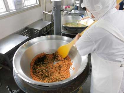 紅ざけフレークと白ごま、あおのりをいためて作ります。香りがとても良くて、おいしいですよ。