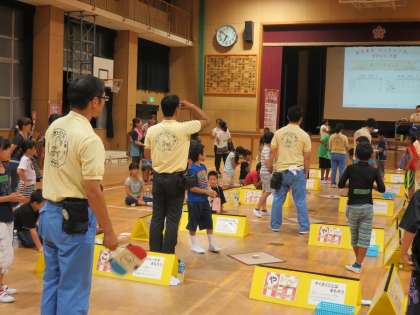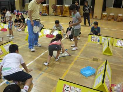 夕食後は、生野区いくみんの皆さんによる「ガチメン大会」を、校庭ではキャンプファイヤーを囲んでのゲーム活動など。夜のキャンプ活動を楽しんでいました。