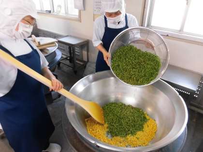 今日は、生のさんどまめを使っていますので、シャキシャキの食感がとても良いですね。
