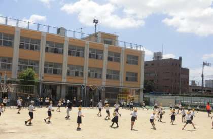 避難訓練も終わって、子どもたちは20分休憩に元気いっぱいに遊んでいました。