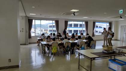 海島遊民くらぶに到着し、「ジェルキャンドルづくり」のクラフト体験をしています。