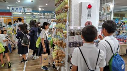 6年生は少し怖がりながらも、たこなどを触って楽しんでいました。