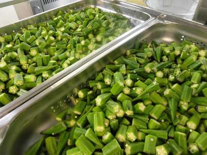 「和風焼きそば」には、ピーマンを使用しています。オクラは、甘酢あえに使っています。これから、給食にはたくさんの夏野菜が登場します。探してみてくださいね。