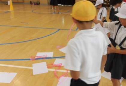 はじめのコーナーでは、借り人のお題をとります。お題にそった人は、受付やルール説明のところにいます。次のコーナーでは、ピンポン玉をスプーンにのせて、平均台の上を歩きます。最後のコーナーでは、クイズを解きます。解けたらゴールに行きます。