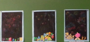 学校の玄関掲示、廊下の掲示は、2年生の作品です。