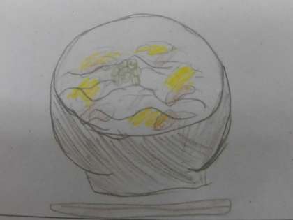 だしでうどんを炊いて、豚肉、卵を入れ、仕上げにねぎを散らします。